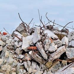 As for recycling construction waste, the demolished walls and floor slabs are classified into three levels by size first. The largest ones are used for land grading. The seconds are for street furniture. The smallest gravels are mixed with soil to compose a new wall structure.