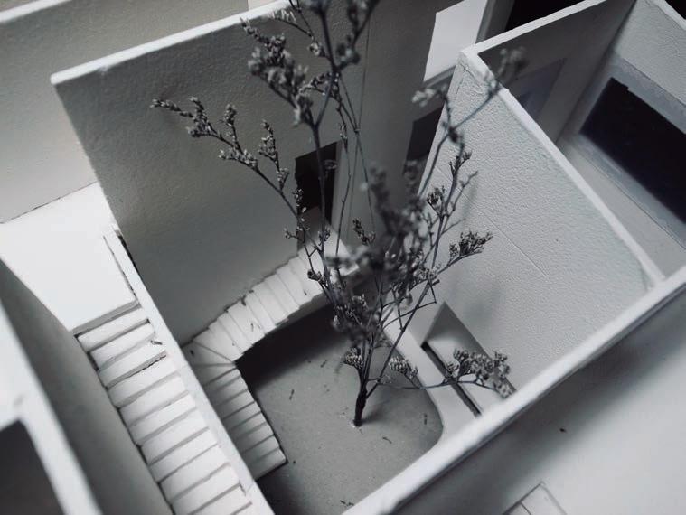 First,thestripswhichmakeupthewallarecurvedandtwisted.The180-degree curve creates a double-layered system. The internal one ensures privacy, and the externalonecancreatevisuallightness.Thewindcanlightcanflowin,butthe line of sight is blocked outside on the other hand.