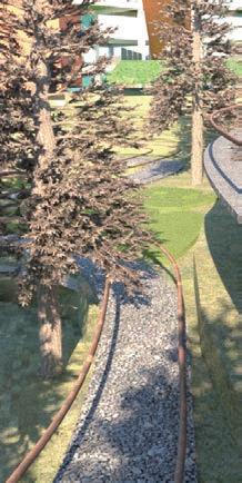 Water, pedestrian pathways, and vegetation are intertwined to create vertical landscapes that facilitate rainwater circulation and soil purification.