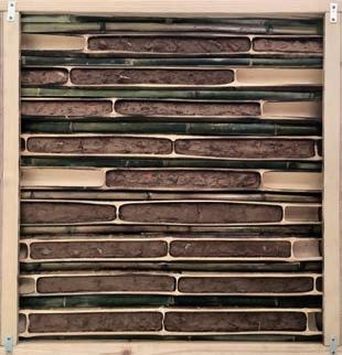 In the final version, two bamboos filled with soil and construction waste of different diameters were longitudinally sectioned and then clipped to each other.
