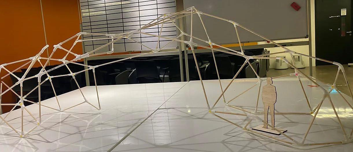 For the 2nd group of prototypes, we tried to include a roof over the series of geodesic bubbles to help provide protection from the rain and sun.
