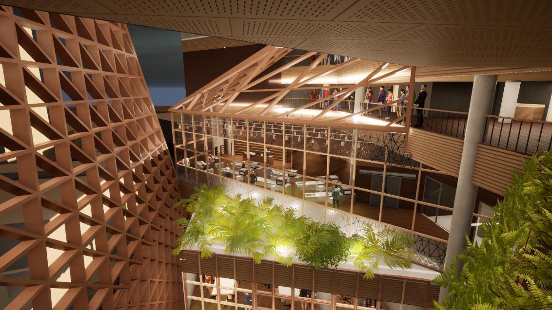 The 3rd level consist of meeting rooms that allow external companies to use the space and to also help engage the students. There is also a library for the students. The classrooms on this level also look into the voids that allow students to look down into the event space below.