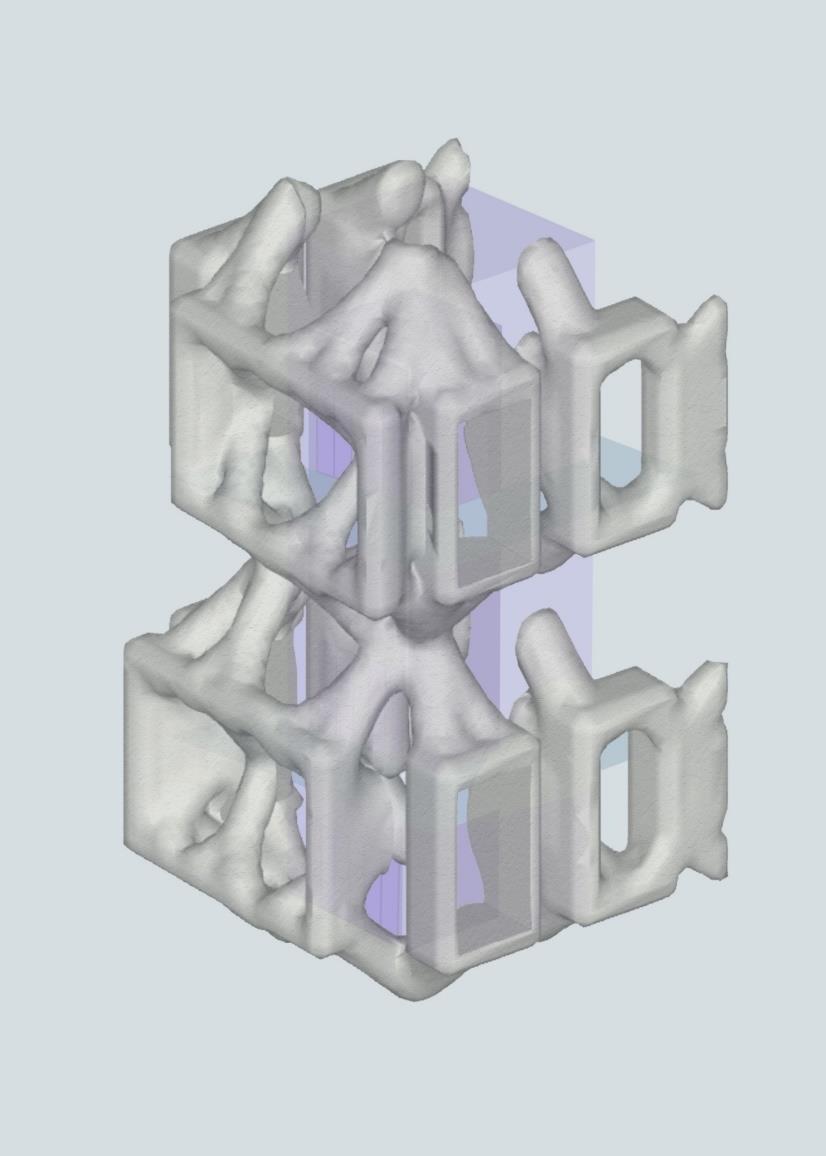 While designing the Topologically optimized structure, it was designed around the concept of including a central core which allows for both vertical and horizontal forms of circulation through the use of the central core. This central core can include a lift and staircase core along with a set of corridors to allow for efficient circulation throughout the entire structure itself.