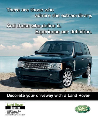 Decorate your driveway with a Land Rover. Land Rover Encino 15800 Ventura Blvd 1-866-GO-ROVER www.landroverencino.com