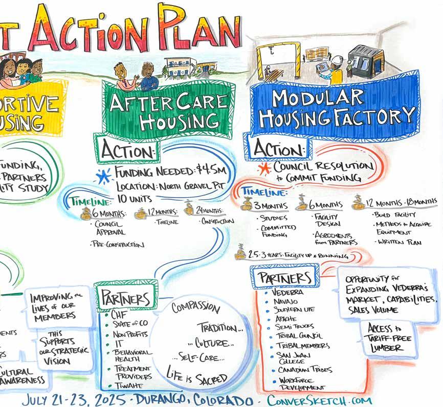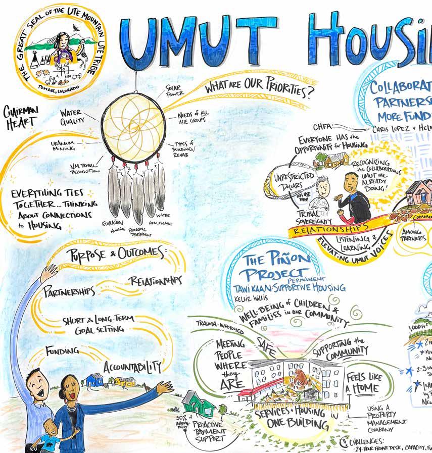 To proactively seek partnerships and funding to address deep-rooted economic and social challenges, UMUT hosted the first-ever Ute Mountain Ute Tribe Native National Partnership Retreat in 2015, called Walking in Our Moccasins. It brought state, federal and private funding partners together to understand the comprehensive needs of the Tribe and help refine tribally designed solutions to align with current funding opportunities. Forty funding partners attended the event, and UMUT has leveraged their active participation into more than $170 million in new grants over the past nine years.