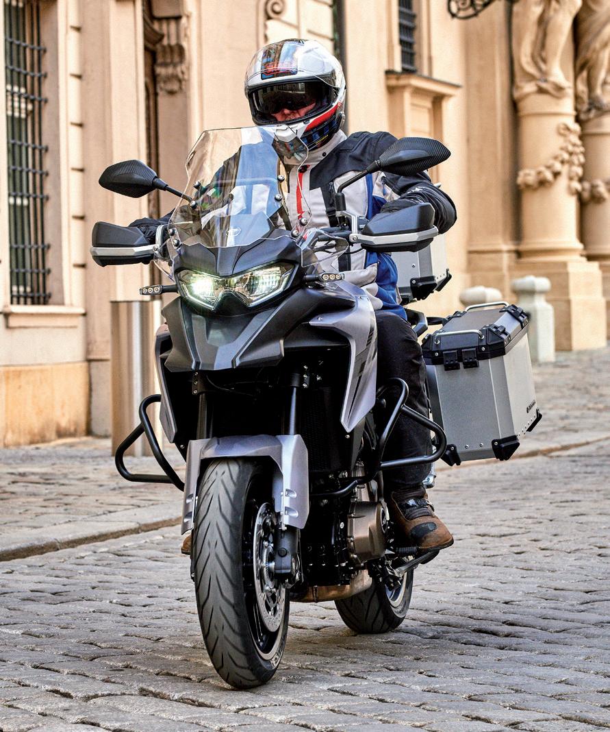 Die ABS-Bremsanlage mit Scheibenbremsen vorne und hinten bietet sichere Kontrolle in jeder Situation. Zwei 320 mm große Bremsscheiben vorne sorgen für präzise dosierbare Bremskraft.