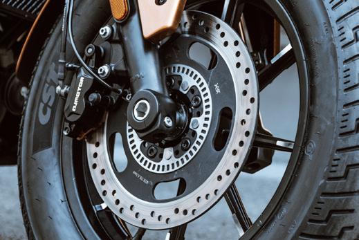 Die ABS-Bremsanlage mit Scheibenbremsen vorne und hinten bietet sichere Kontrolle in jeder Situation. Die 300 mm große Scheibenbremse mit radial montierter Bremszange vorne sorgt für präzise dosierbare Bremskraft.