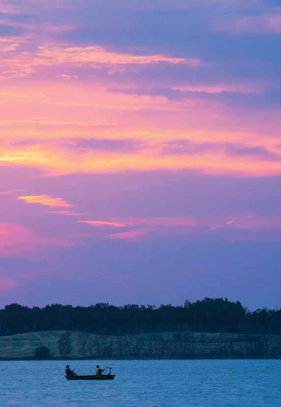LAKE OF THE PRAIRIES has recorded an annual walleye catch per square kilometre that is five times greater than the provincial average. Due to the tremendous resources required to keep Lake of the Prairies wellstocked and to preserve the high quality of the fishery, a slot limit on catches has been enacted. See page 28 for more about fishing at Lake of the Prairies or other lakes of the Parkland.