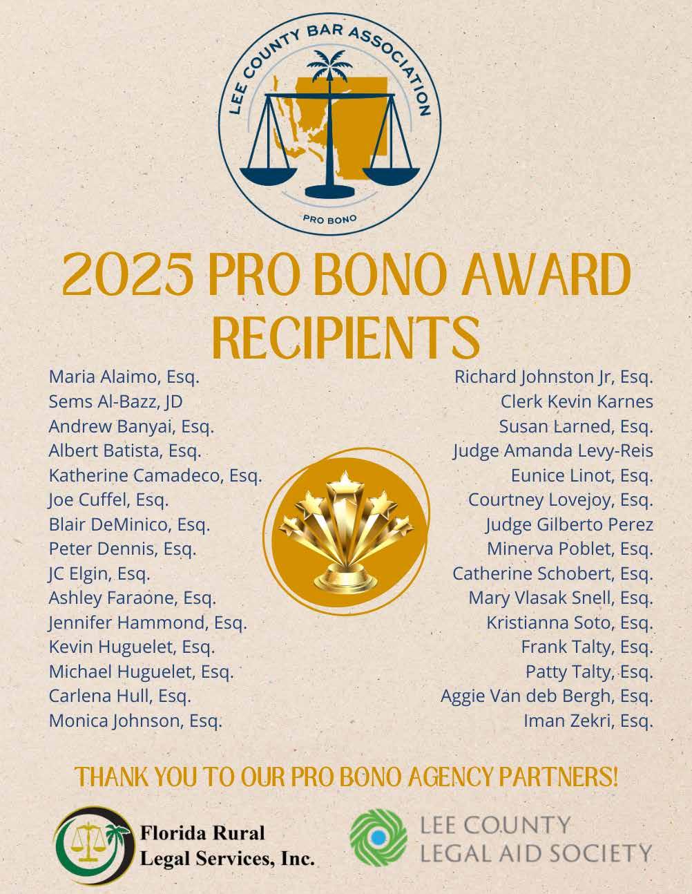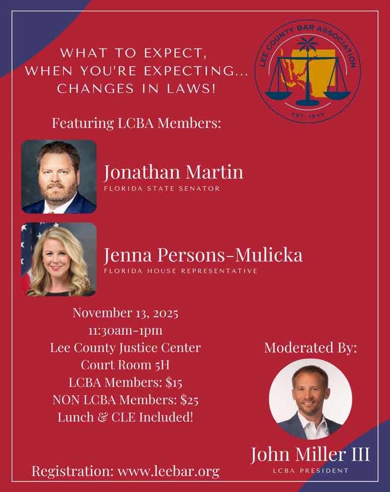 As 2025 winds down, I want to highlight the amazing things happening within our legal community. It’s been a busy and rewarding time for the Lee County Bar Association (LCBA), and I’m proud of what we’ve accomplished together.