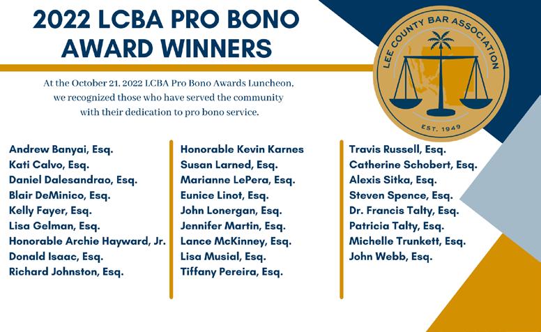 THE OFFICIAL AWARD-WINNING PUBLICATION OF THE LEE COUNTY BAR ASSOCIATION • NOVEMBER 2022 hurricane ian edition Ladies in Law After the Storm Mentorship, Leadership & Professional Development Stay operable and secure with an IT preparedness plan Give to the Emergency Relief Fund Connect with Recovery Resources