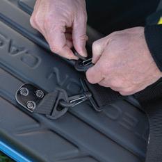 Unlike any other keepnet on the market where the tilt fitting is fixed, the Slider fitting and be either slid along the top ring, or moved. So, the keepnet can be used as a traditional keepnet, or the slider fitting can be moved to transform the net into a compact net, when you need to fit more nets onto a keepnet bar.