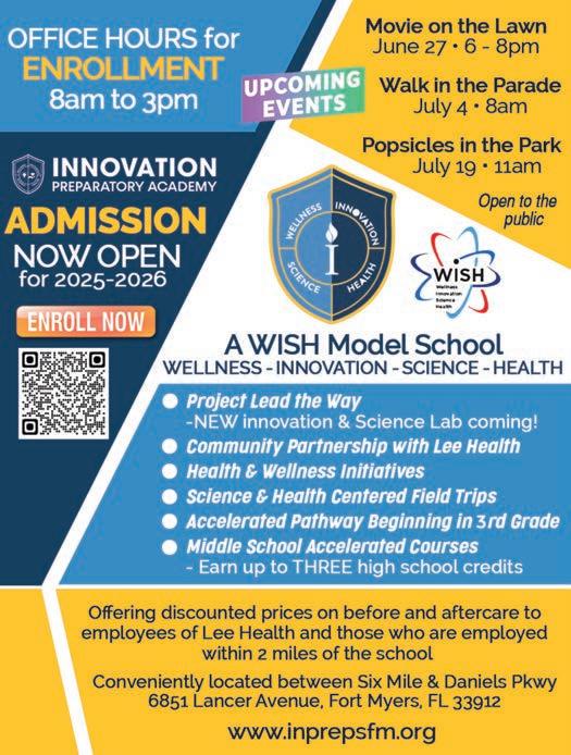 “Ourschoolshavethecapacityand abilitytooffersomethinguniquethatis notavailableinanyotherschoolinLee orCollierCounty,”saidThompson. “TheW.I.S.H.modeladdressesacademicexcellenceandputsastrong emphasisoninnovativestrategiesto offerstudentscareerpathwaysintoscienceandhealthfields.”