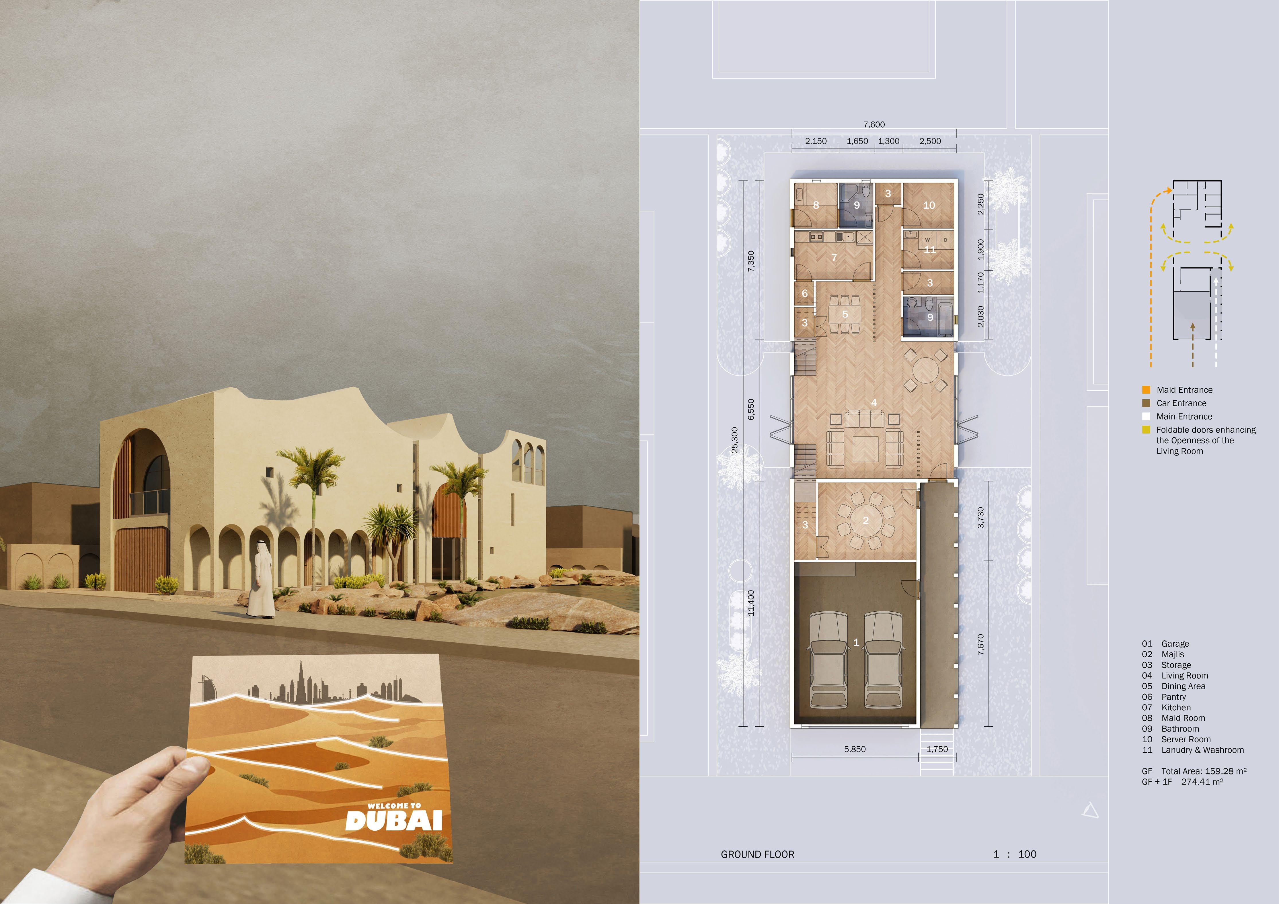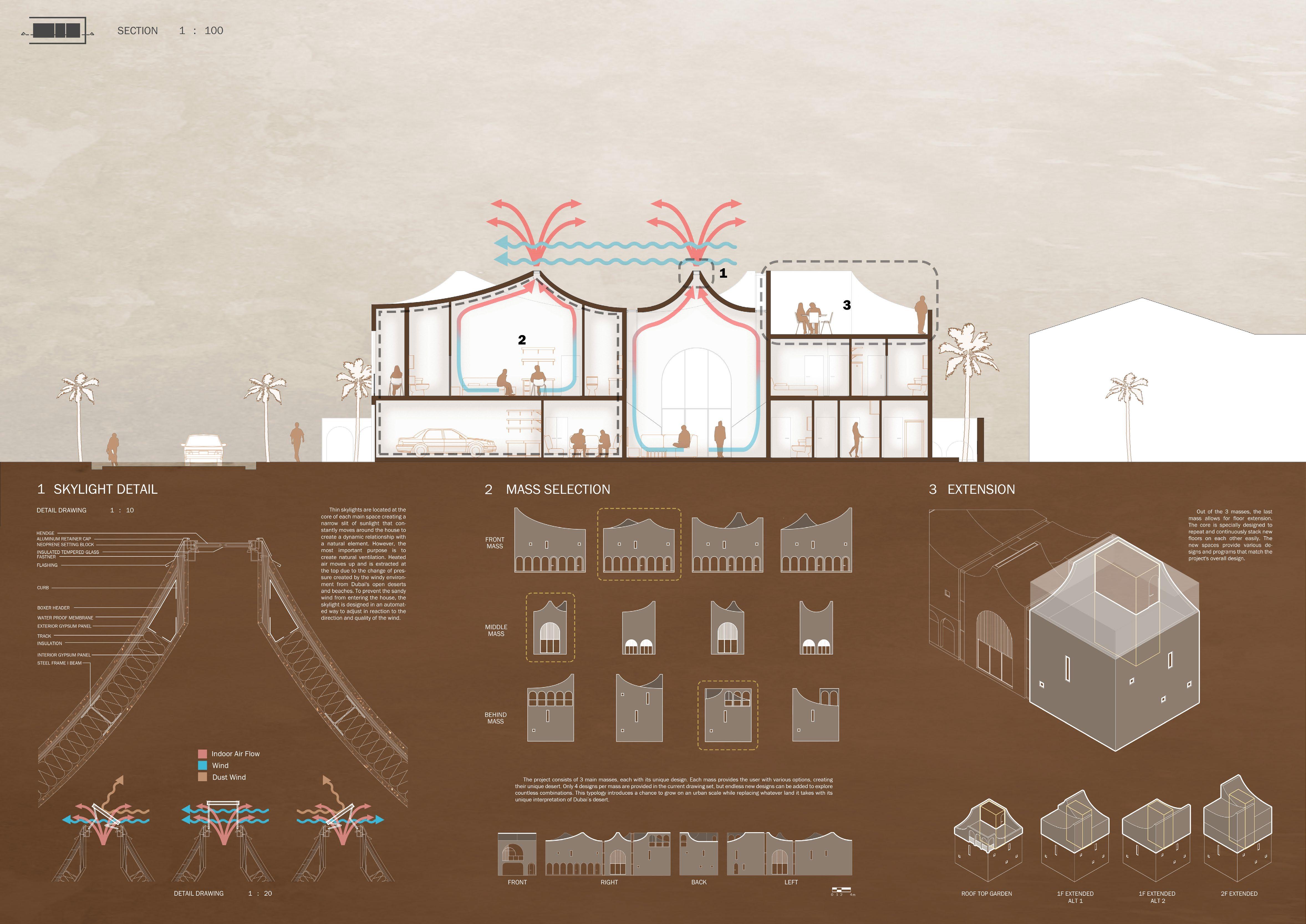 The beautiful desert landscape of Dubai doesn’t get enough attention it deserves amongst the rich culture and the world-renowned cityscape. This project aims to pay tribute to the desert’s profound influence on Dubai’s heritage and contemporary identity. The design blends seamlessly with the natural surroundings by drawing inspiration from the desert’s undulating dunes and the ever-changing play of light.