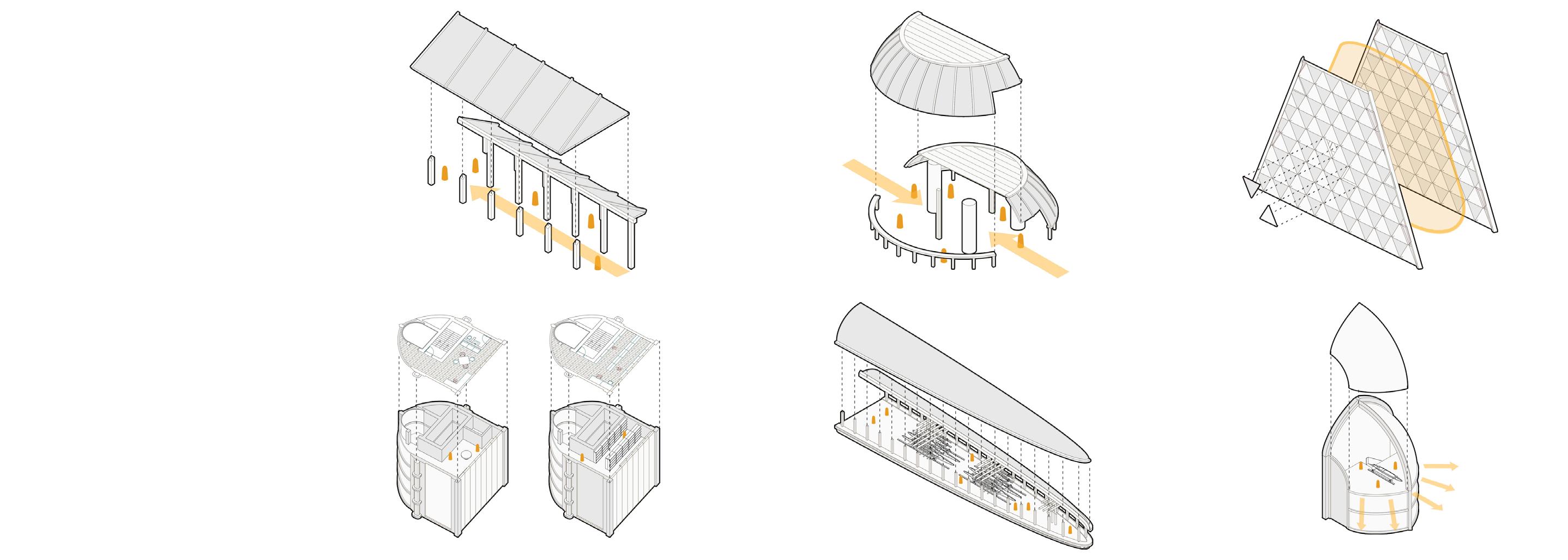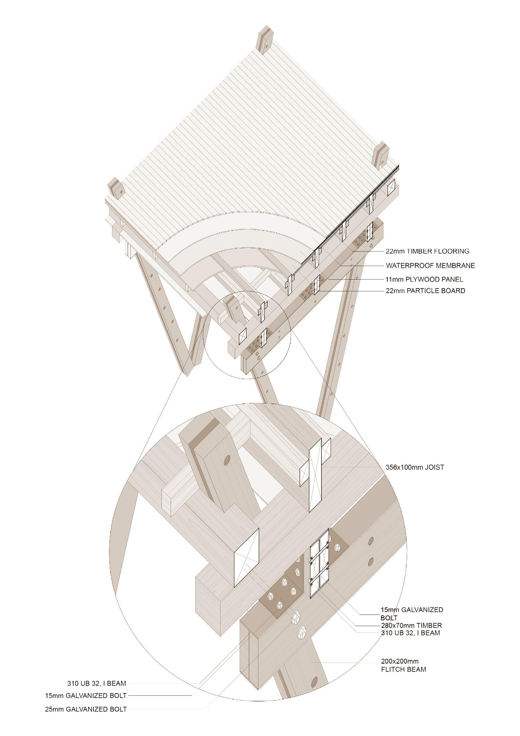 Considering the cost-effectiveness, this project is executed using a skeleton framing technique with steel. Notably, the 3 masses are independent with their own separate steel framing structure, allowing for a potential modular expansion approach for future enhancements.