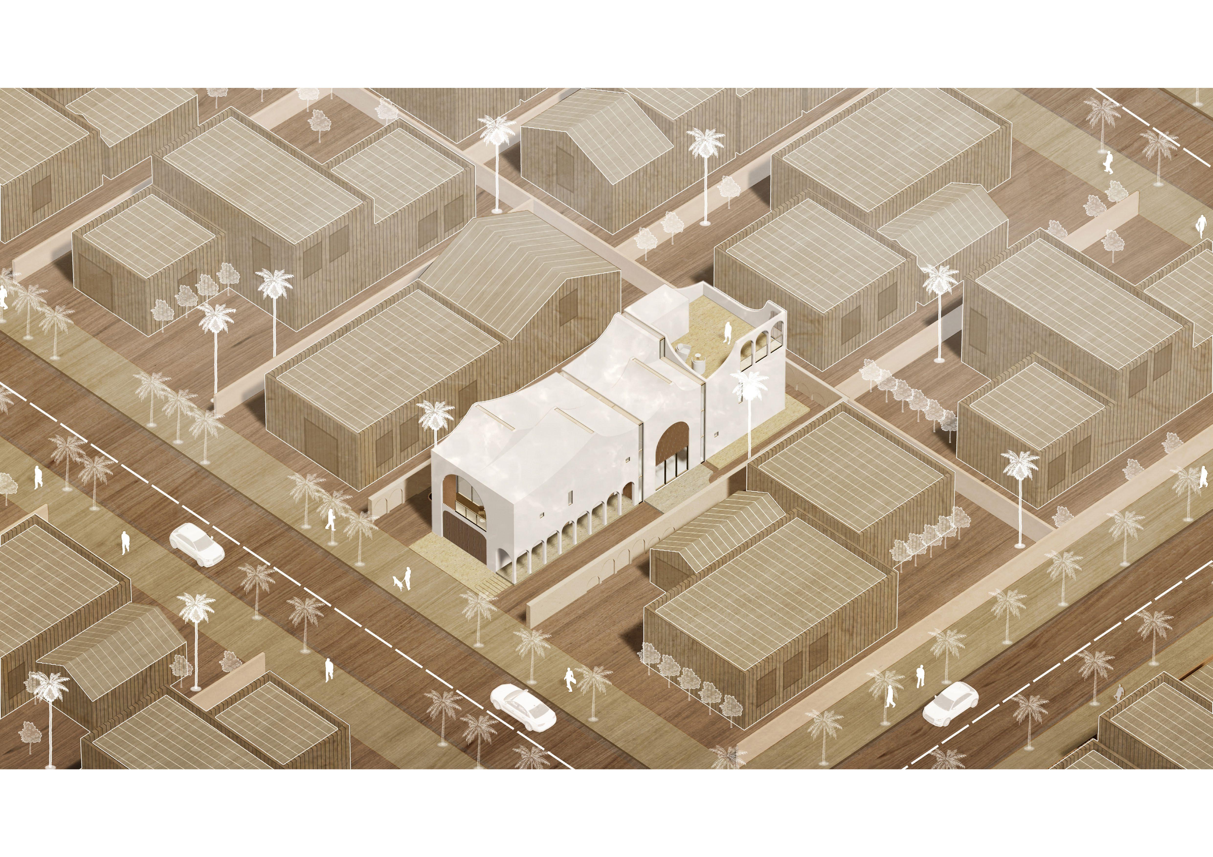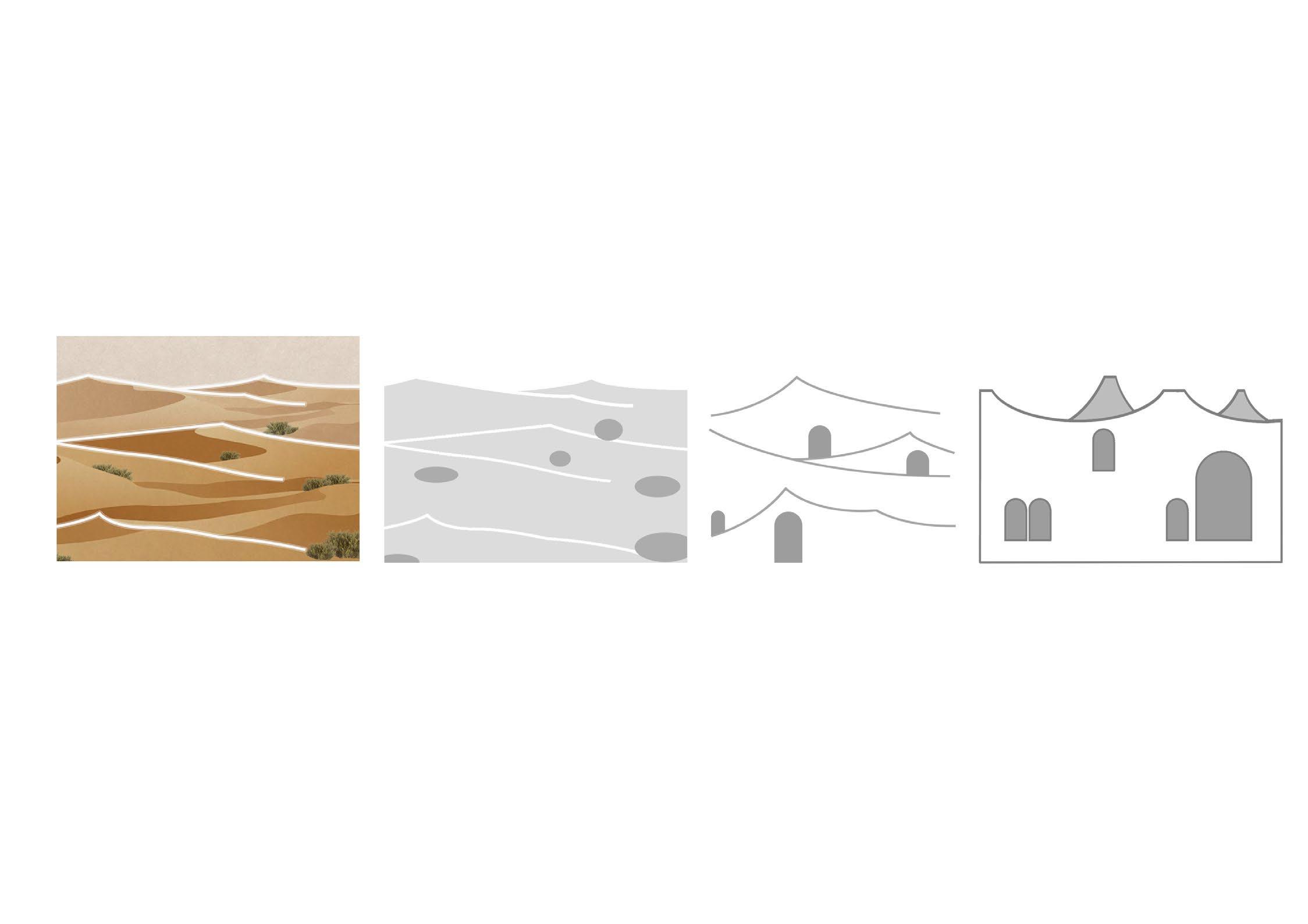 over with its desert like form. As the project grows into an urban scale, the overall aesthetic becomes the Arabian Desert rather than a contemporary village.