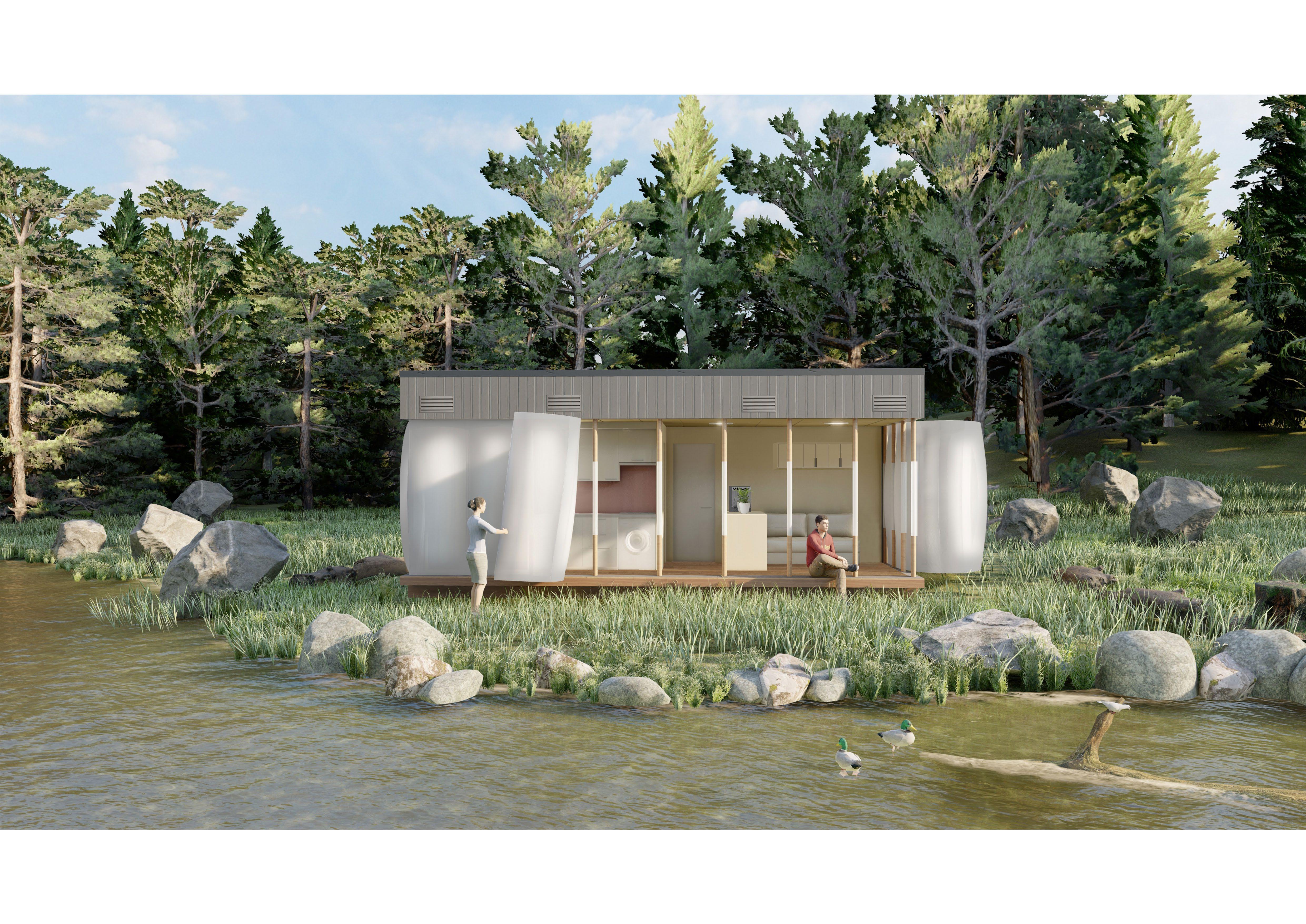 The Pneumatic Membrane is an inflated structure made from PVC-Coated Polyester commonly seen in giant pool inflatables and bouncy castles. The lightweight and bendable property of the wall allows the user to easily reveal and hide large areas with ease, giving complete control over the level of privacy.
