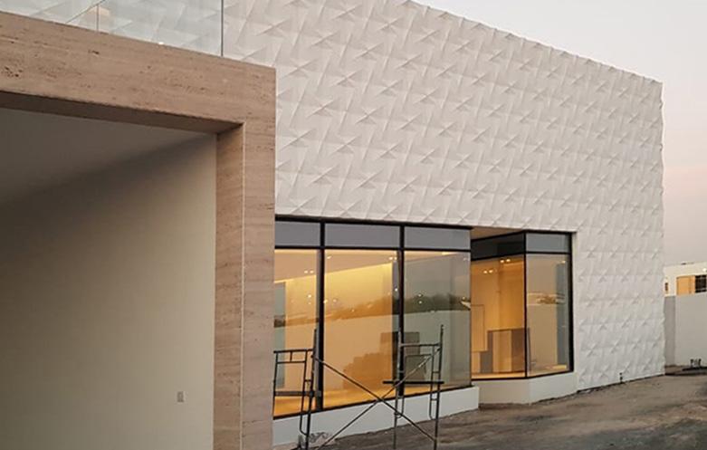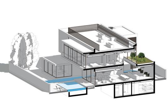 - Cantilevering volumes on first floor /Shaded outdoor on ground level.