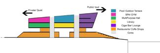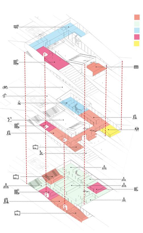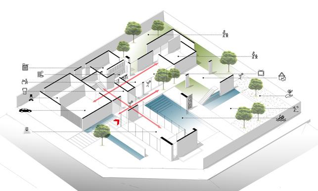 - Double functional massing (amphitheaters), in order to promote outdoor activities.