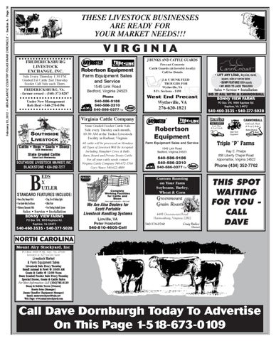 Virginia Cattle Company SOUTHSIDE LIVESTOCK Cattle • Hogs • Goats • Sheep Each Wednesday