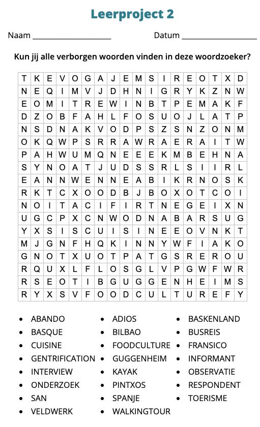 Om de uren in de bus wat te doden, hierbij een leuke woordzoeker