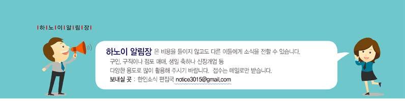 하노이한인회 콜센터 : 032 786 6116 (근무시간내, 한국어 전용)