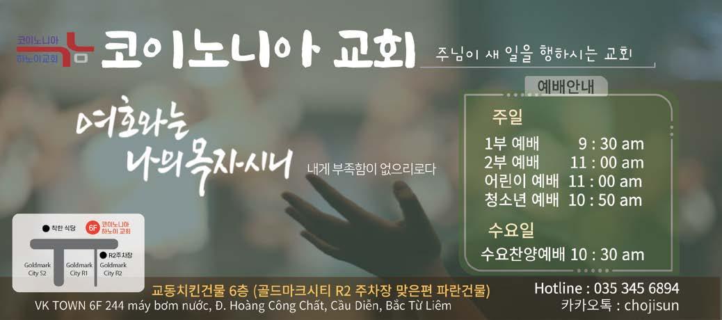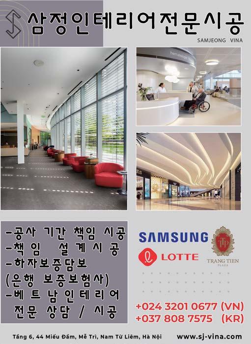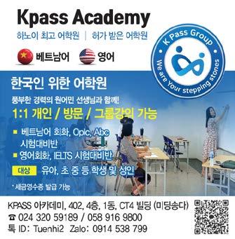 헤드헌팅 : 086-545-9050 / E mail : chkany@naver.com / searchfirm 노동자 송출 : 010-7234-6187 / E mail : tora0303@naver.com / tora0303 LK1-O02 Splendora, KĐT Bắc An Khánh, Xã An Khánh, Hoài Đức, Hà Nội / www.tsglobal.net , www.tsvinagroup.vn 베트남 노동자 해외 송출 라이센스 보유 기업 Giấy phép xuất khẩu lao động 한인소식 광고주는 교민의 공익과 행복을 지원하는 후원자 이십니다 Monthly Magazine for Korean in Vietnam KOREAN NEWS 광고문의 대표전화 024) 3555-3015~6 하노이한인회 발행“한인소식”의 광고 접수·마감은 매월 15일 입니다 notice3015@gmail.com 문화강좌 quanlylophoc2023@gmail.com