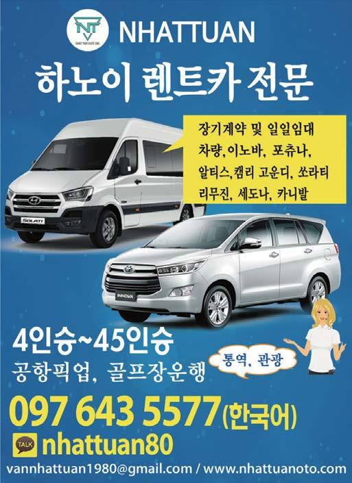 하노이 한인소식 215 ESPRESS CONSULTANT REAL ESTATE TOU R/ HOTEL I T/ NETWORK SERVICE BEAUTY RESTAURANT CONSTRUCTION DOOSANPOWER vina co.,LTD www k imwed com KR 090 843 0716 skoreapkk@naver.com VN 097 705 9448 hanhmayphatdien@vinagenset.com