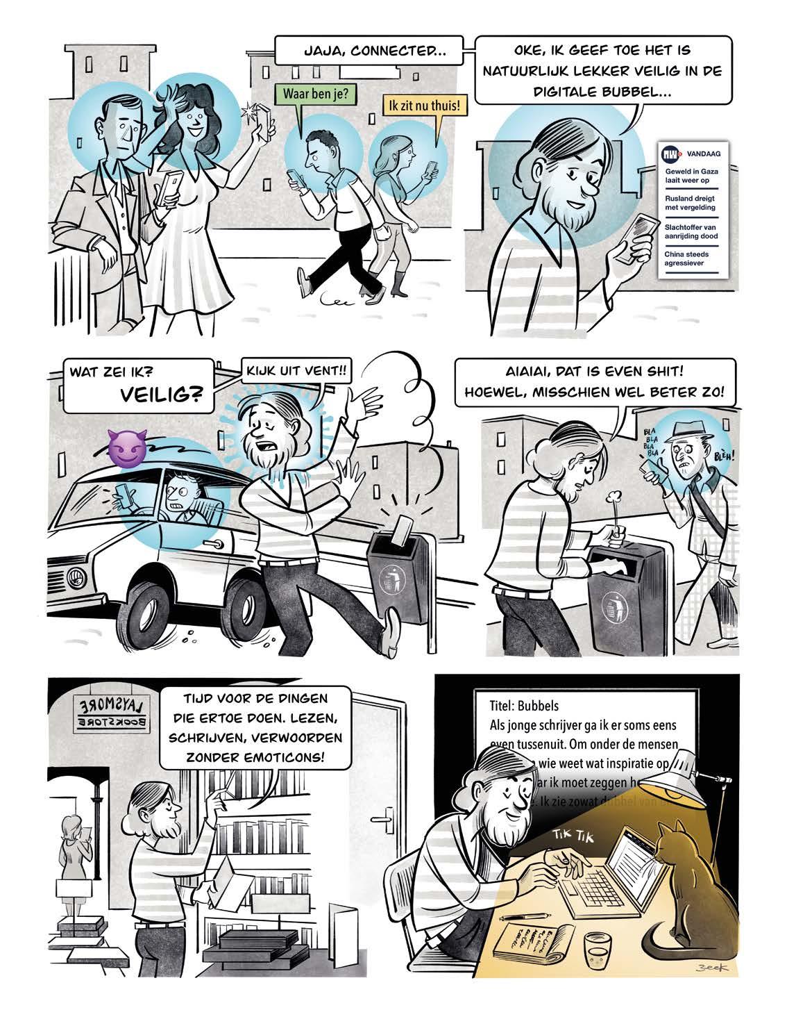 Verwarm je nuancespieren vervolgens met Het laatste voorjaar van Minke Douwesz, waarin vijftiger Ese ‘gewoon’ haar best doet het goede te doen, haar ecologische voetafdruk zo klein mogelijk te maken én een inspirerende docente te zijn. Ze heeft verantwoordelijkheidszin zonder rechtlijnig te zijn, schreeuwt haar mening niet van de daken maar handelt wel naar haar eigen normen. Bescheiden en onverschrokken tegelijk is Ese. Voel hoeveel waarde zo’n houding heeft.
