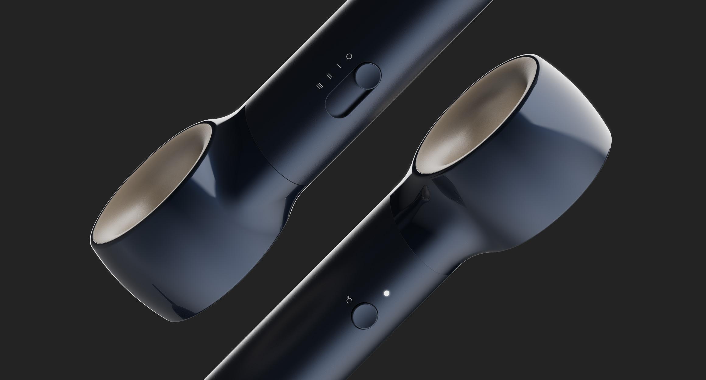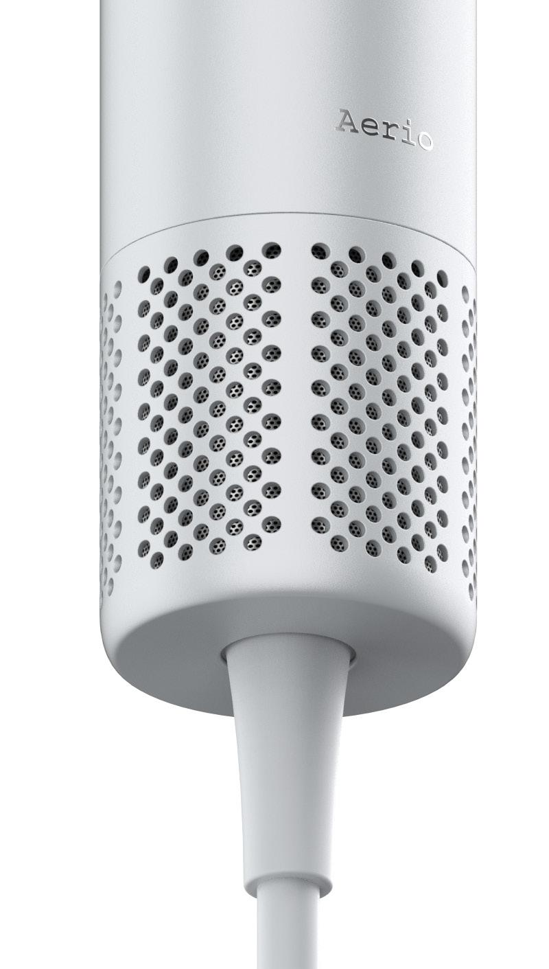 The Aerio Hair Dryer concept is a thoughtfully designed that balances both aesthetic appeal and ergonomic functionality. A key feature of this concept is its asymmetric design, with an air outlet positioned slightly to the left, creating a unique and visually striking look. The devices handle tapers smoothly toward the cable connection, allowing the form to flow seamlessly from end to end.
