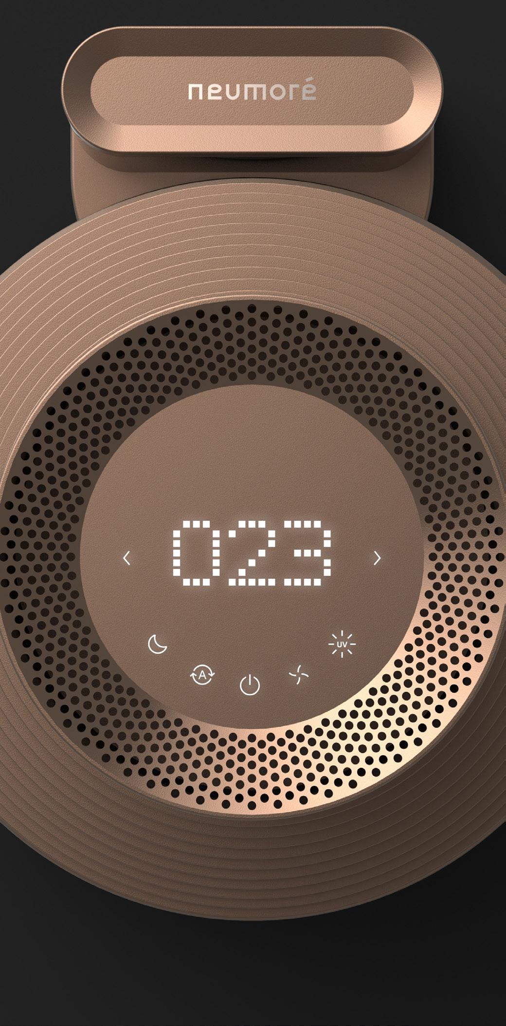Equipped with UVC sterilization, plasma ionization, and a multi-layered replaceable filter, the air purifier offers efficient purification capabilities. Additionally, it features smart connectivity, allowing users to control the device remotely via the neumoré smartphone application.