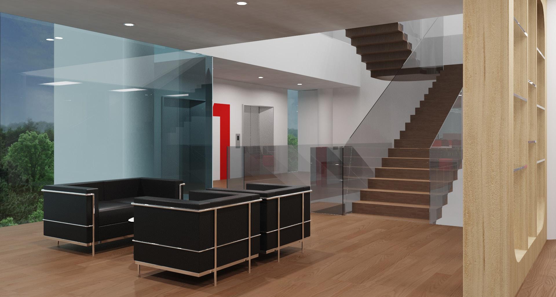Upon exiting the elevator, visitors are welcomed by a lounge area and a display cabinet that showcases the organization’s past achievements. The existing staircase from Level G to Level 2 will be retained but modernized to enhance its visual appeal.