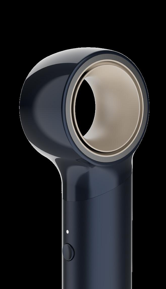 Control buttons are strategically placed along the side of the device, achieving two goals: maintaining an uninterrupted, sleek appearance from the front and back, and aligning with the handle’s shape to optimize usability.