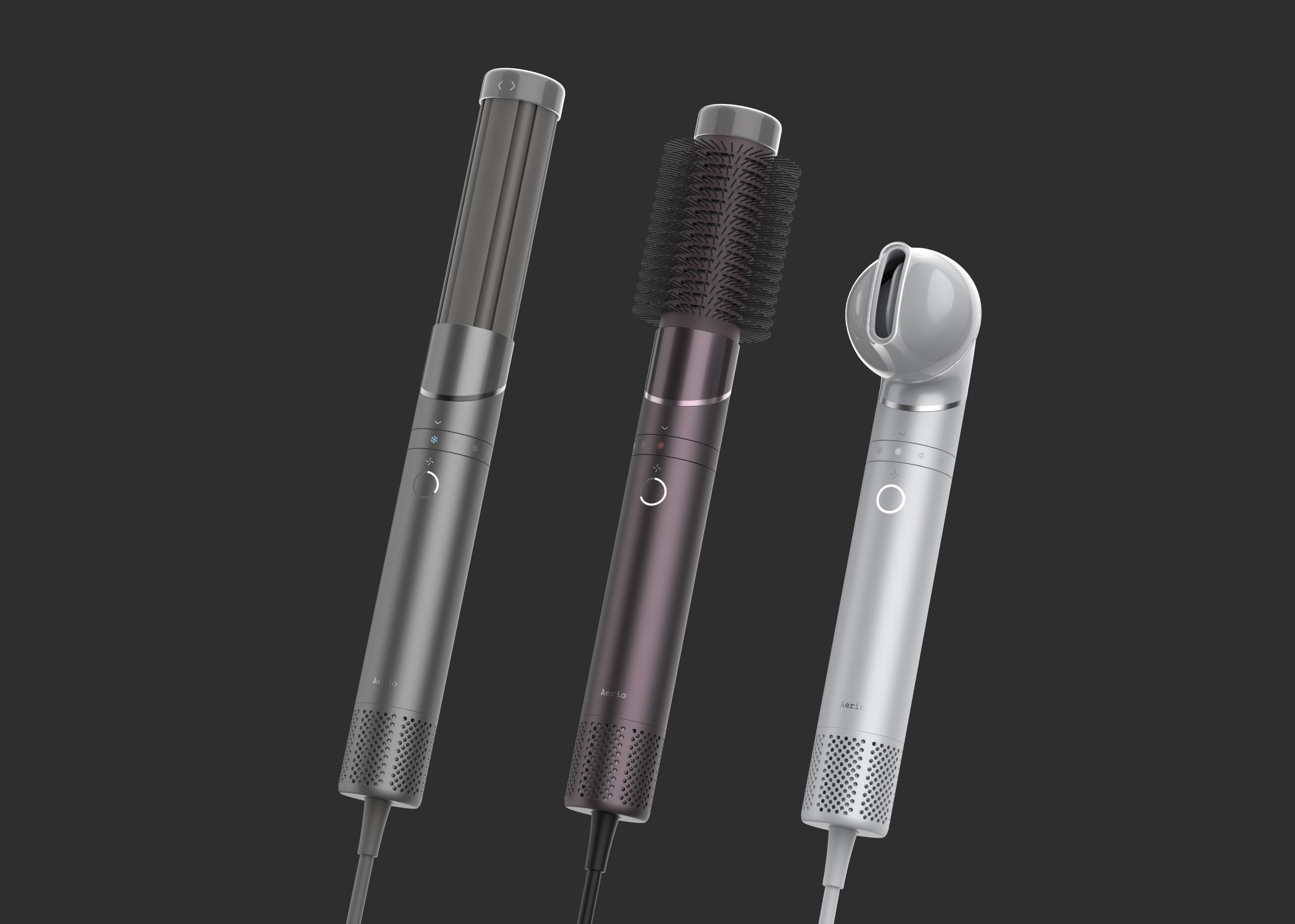 The Aerio Hair Styler is a versatile device designed to create various hairstyles, combining curling, straightening, volumizing, and blow drying in one tool. With adjustable temparature settings and fan speeds, it minimizes heat damage and frizz, providing smooth, shiny results for all hair types.