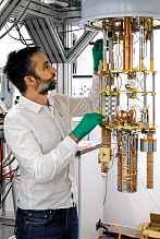 MathieuJuan,professeuraudépartementde physiquedel’Institutquantiqueopérantun dispositifquantique avecun réfrigérateur àdilution.