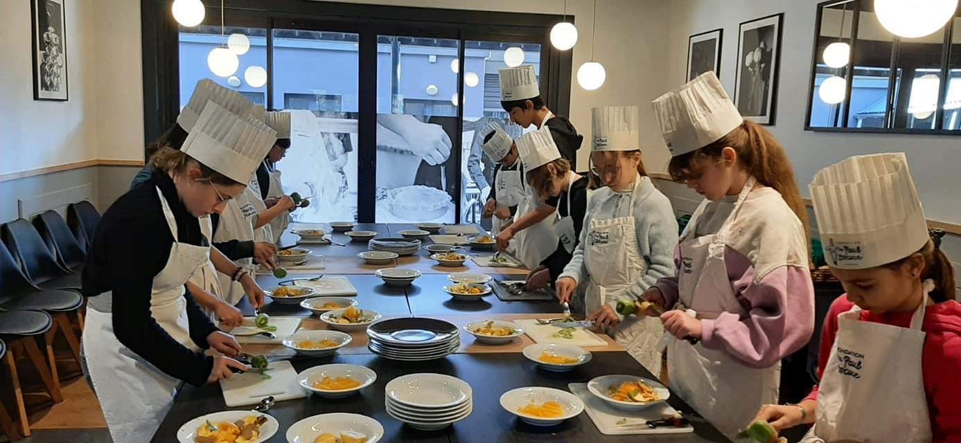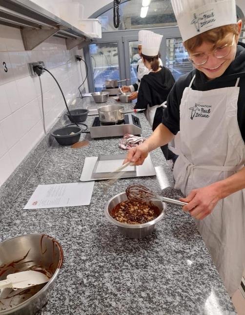 Les Ateliers en partenariats avec la Fondation Paul Bocuse au Fontanil. Des jeunes collégiens découvrent nos métiers de l'alimentation et de la restauration en vue de leur future orientation professionnelle.