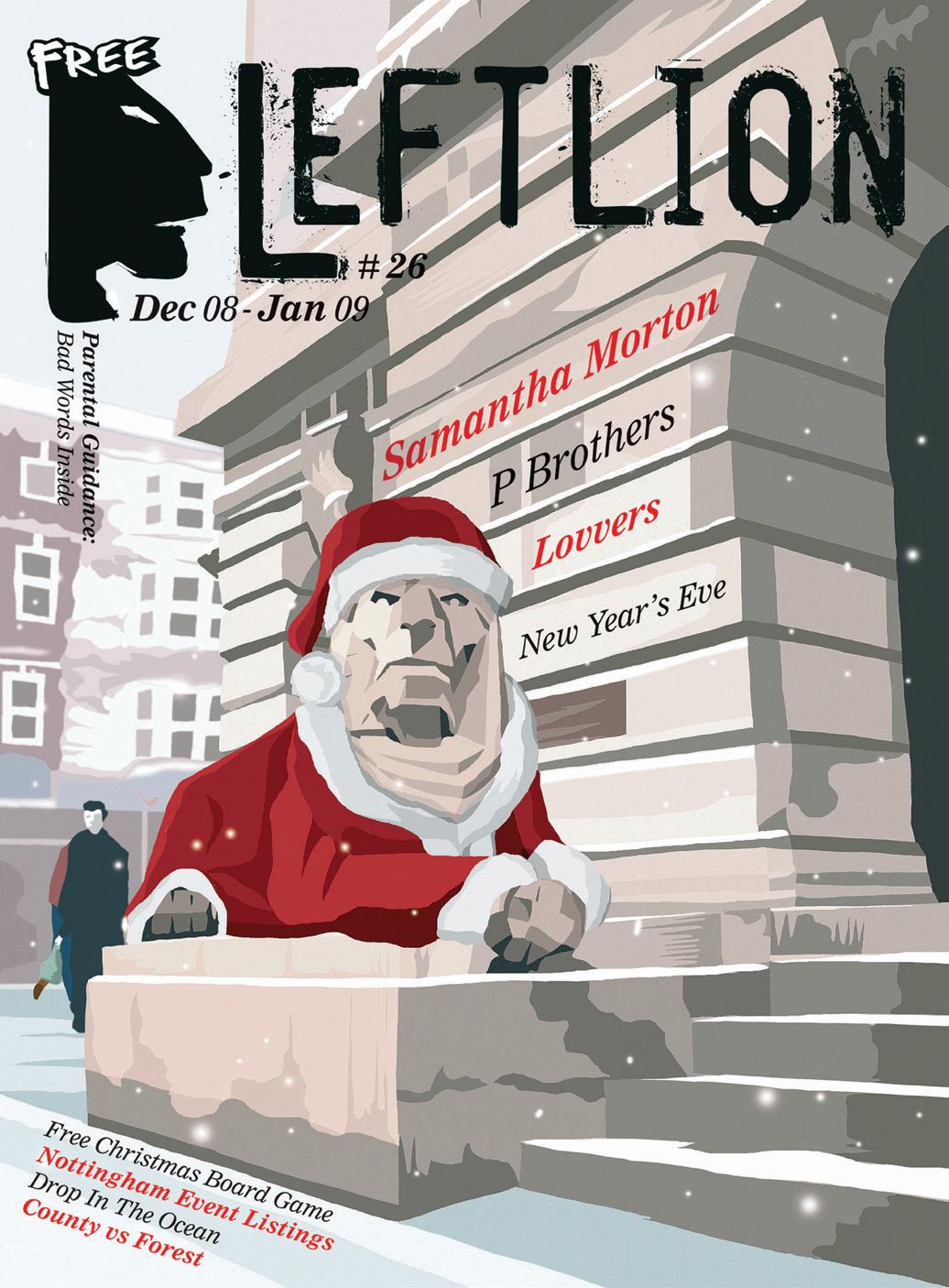 We’d love to do a proper LeftLion advent calendar with opening doors, but printing something like that 10,000 times is out of our budget. Instead we asked Rikki to draw this. True to form, he sneaked his future wife Natalie as the angel on the top.