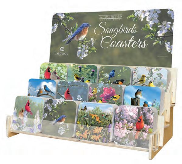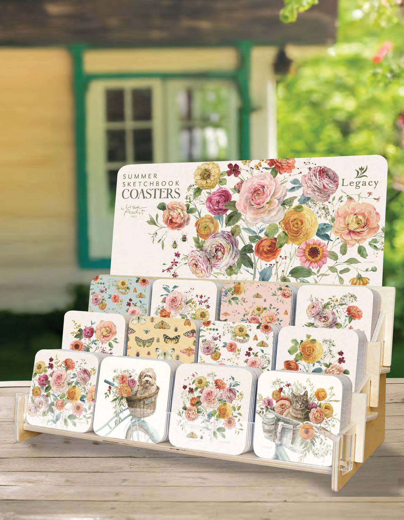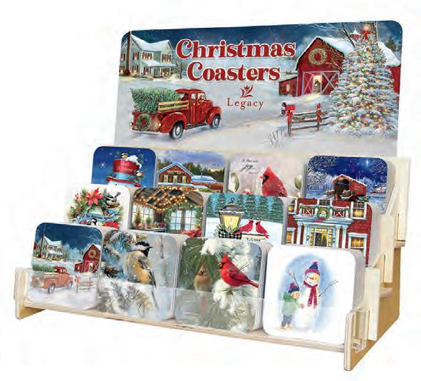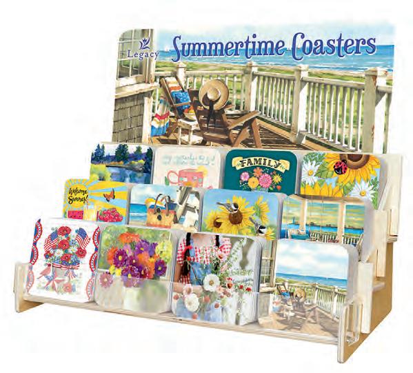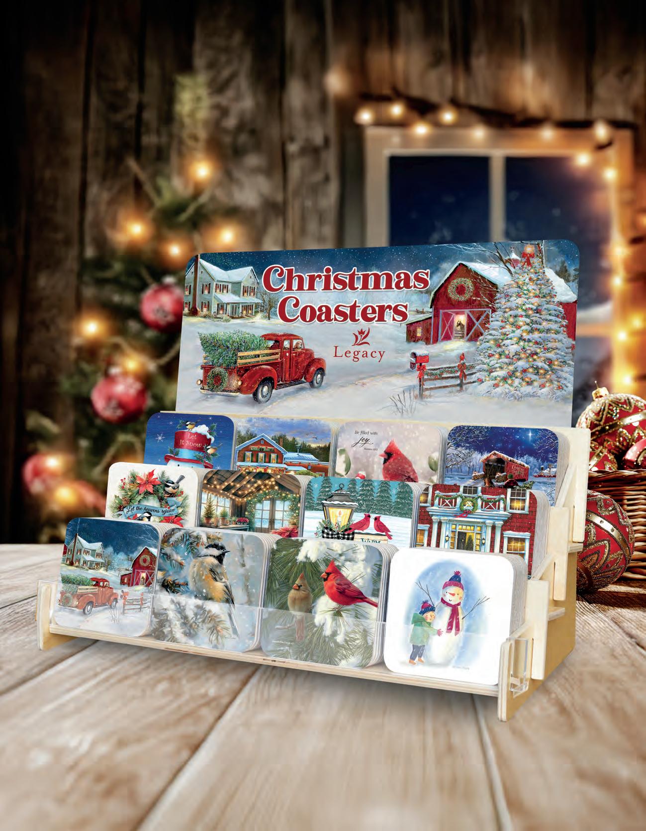 Legacy’s theme-based Coaster Collections display perfectly in any store. Buy them by collection and save 10%. Comprised of 144 coasters (12 each of 12 designs), these collections come with a matching header sign and an optional FREE corrugated display. Upgrade to a Wooden Coaster Display and receive $15 offset (see below).