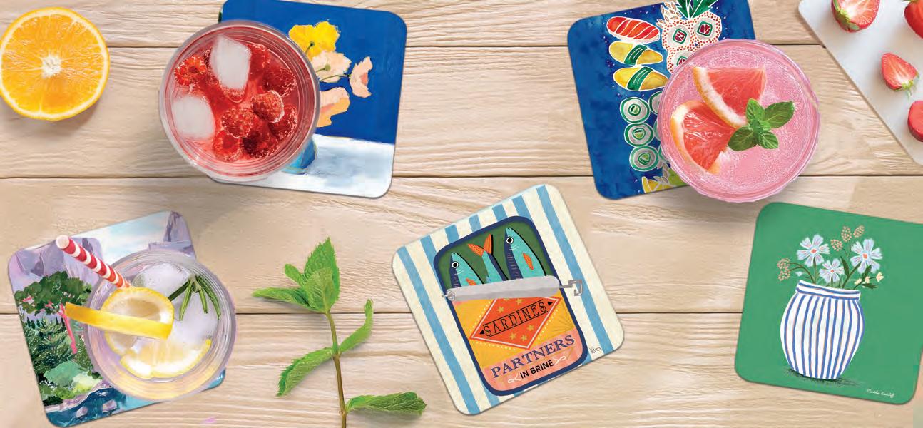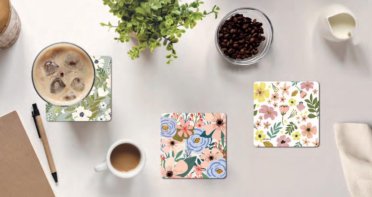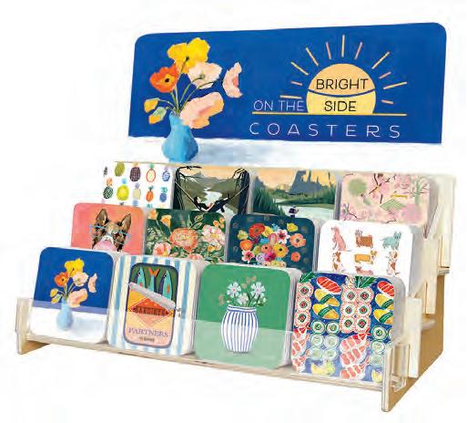 144 CORK-BACKED COASTERS - $180 SAVE 10% $162 $1.25 EACH WHOLESALE | $2.50 SUGGESTED RETAIL size: 3.75” x 3.75” x .125” | minimum: 12 per design MADE IN THE USA