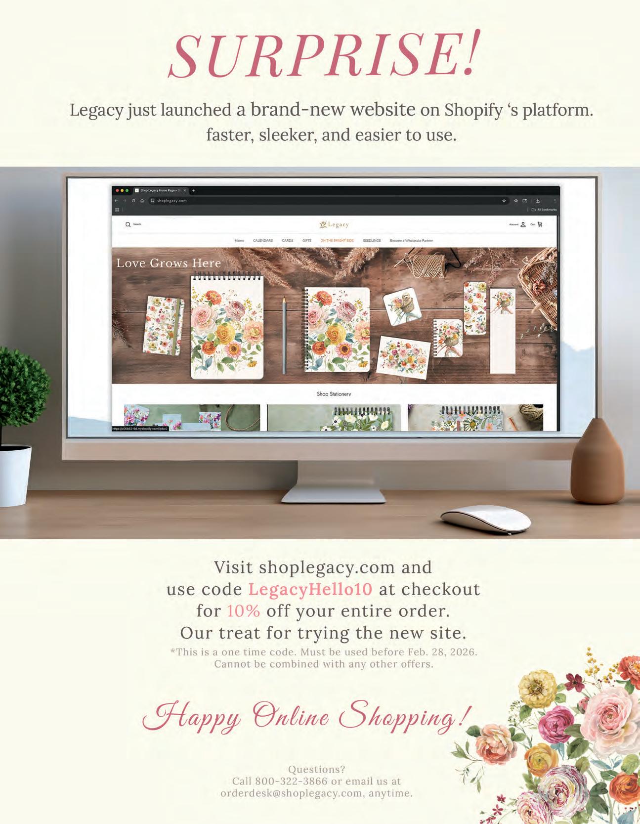 Legacy extends its heartfelt thanks to the many talented artists who contributed to creating our 2026 Greeting Card Line. Their creativity and unwavering dedication to Legacy has made this collection possible.