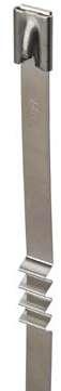 What gives a Ty-Rap® cable tie its exceptional strength? The corrosion-resistant, non-magnetic stainless steel locking barb in its head grips tightly and allows for a completely adjustable fit. Its raised tail makes it easy to pick up, even with gloved hands. And the easy-grip tail surface makes it easy to pull tight, even in wet or cold conditions.