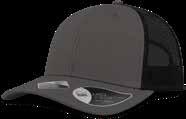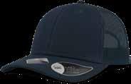 • Structured 6 panel trucker cap • Recycled polyester twill front panels • Recycled polyester mesh side and back panels