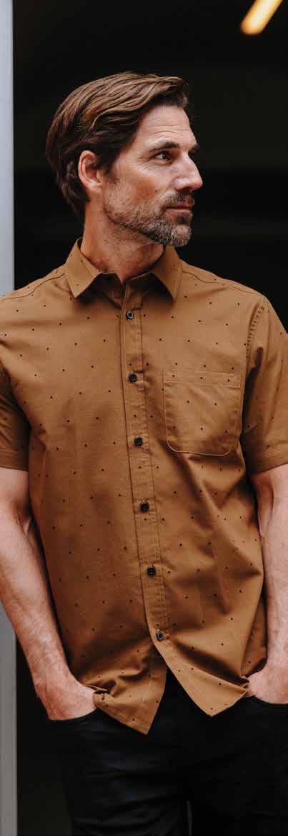 • 3-Button Placket • Anti-Curl Collar • Collar Stand • Mechanical Stretch • Hem Side Slits