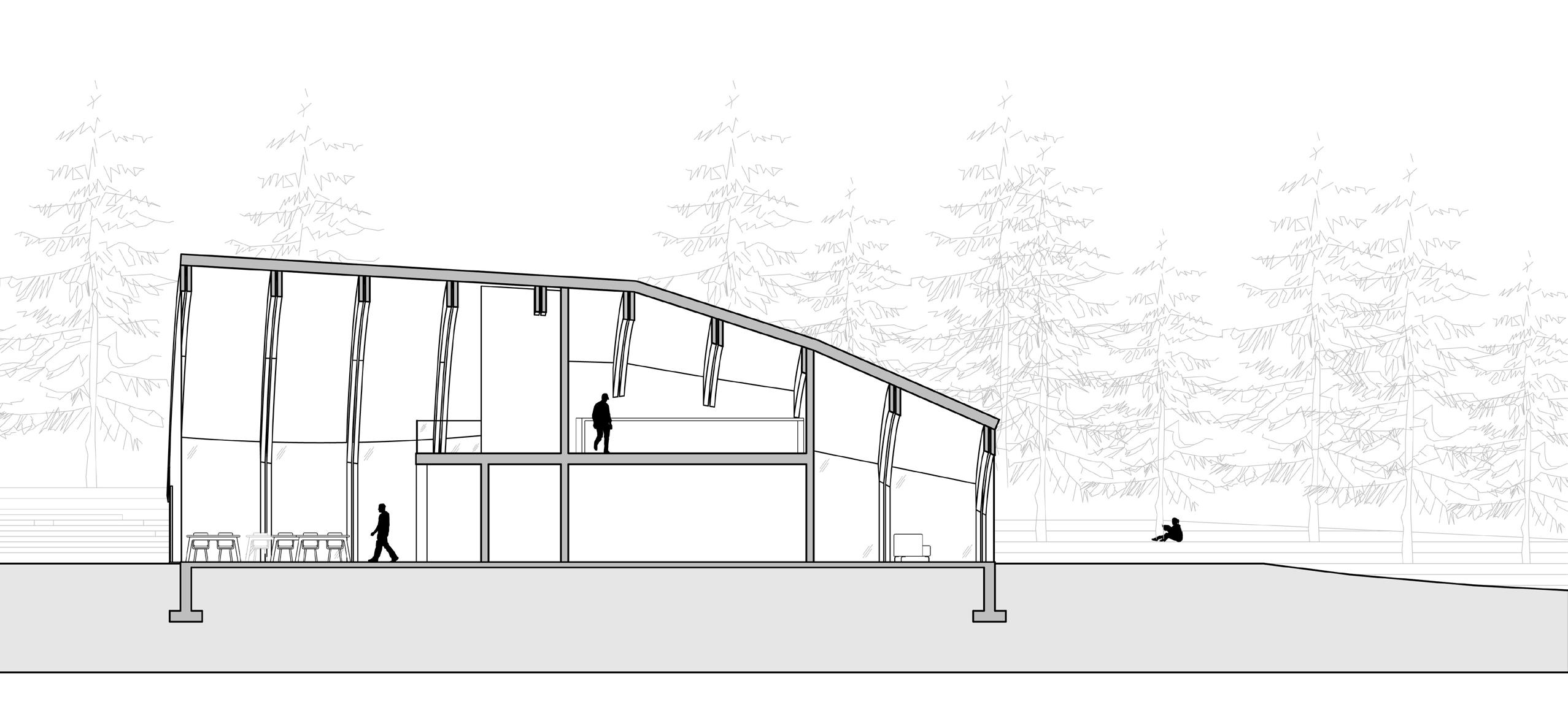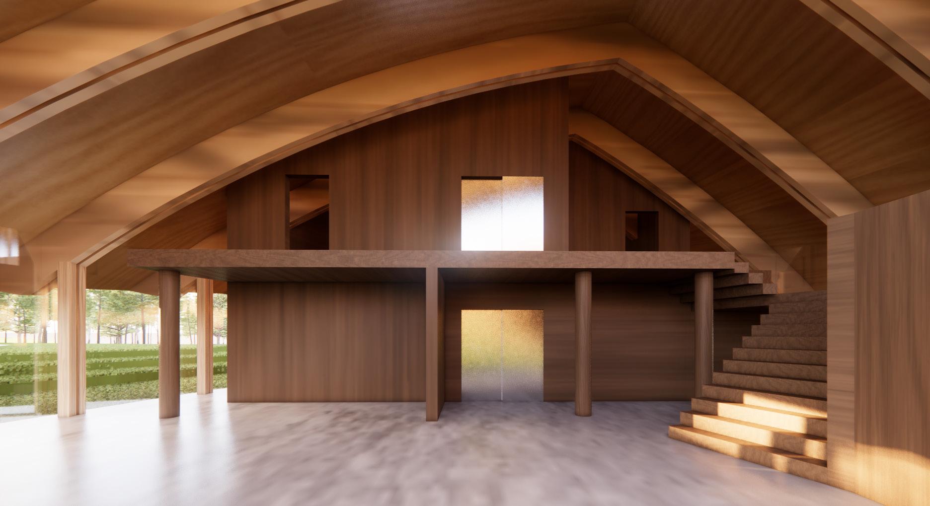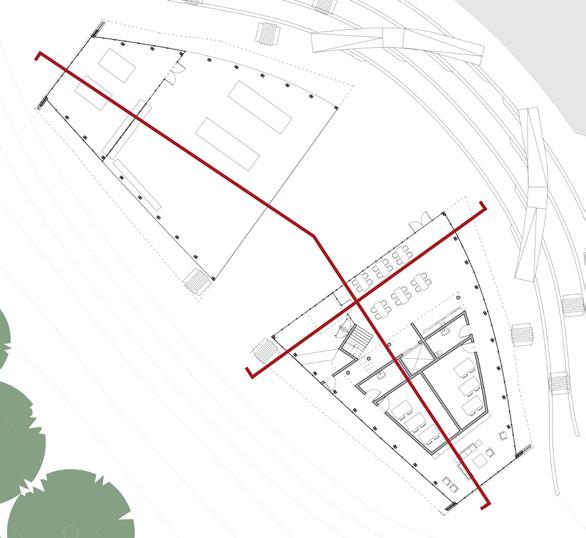 The objective of this project is to design a new boat building facility using wood framing design. Engaging the students and the community through boat building is seen in this design with the creation of an amphitheater encasing the building and the boat shed lacking walls. The design for the amphitheater came from original dugout canoes Native Americans would build out of solid tree trunks. The concept of the building was based off of a birch bark canoe, the Native Americans’ next progression in canoe design. The idea of the space is to create a grounded connection between students learning wooden boat building techniques and the history of wood boats being built in the walls around them. On the site, the building is placed to engage circulation from the current road to the water by opening up between the buildings and the amphitheater.