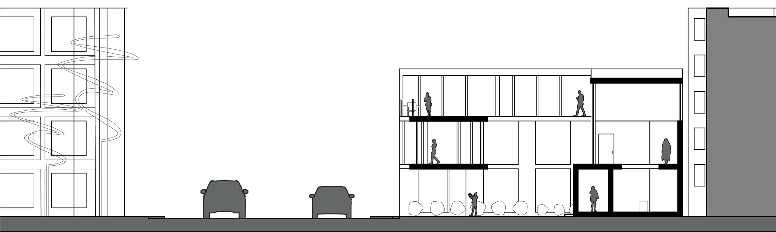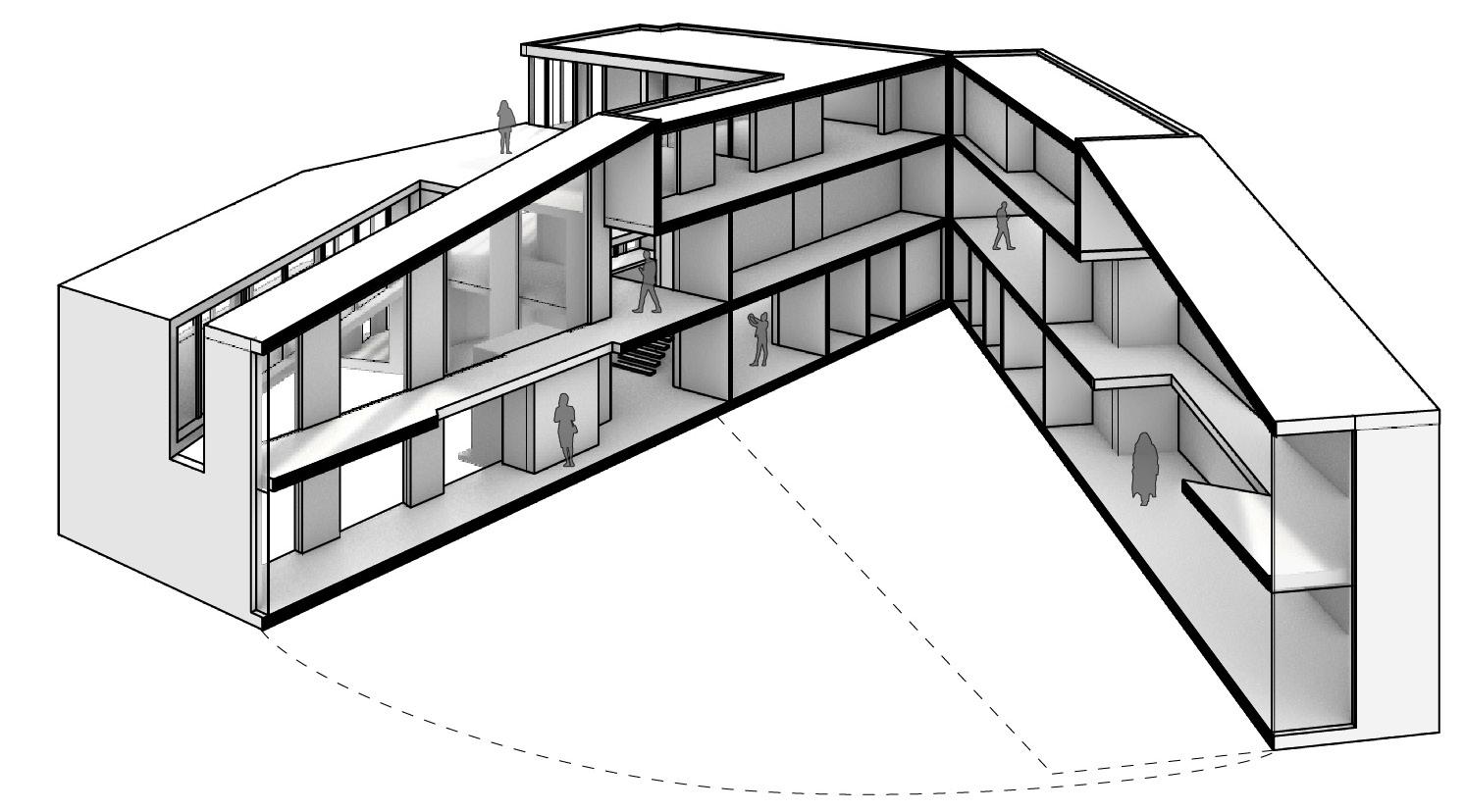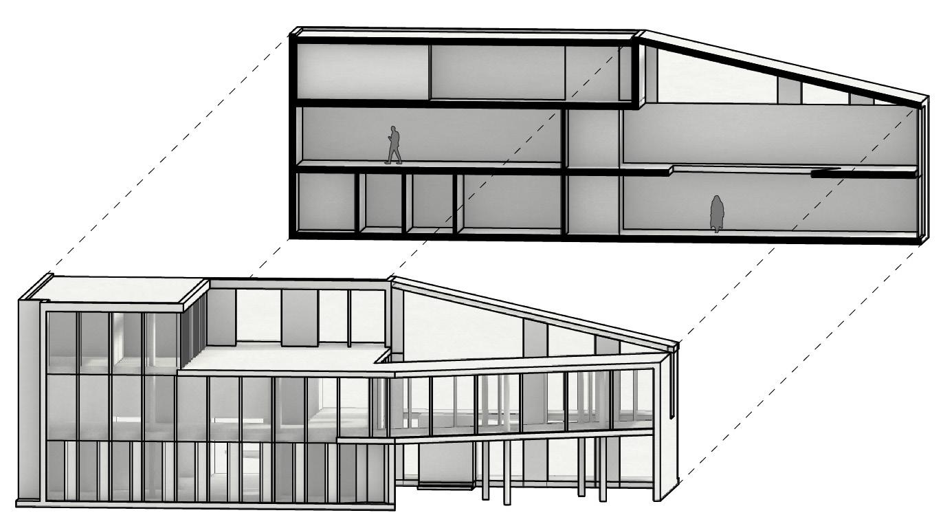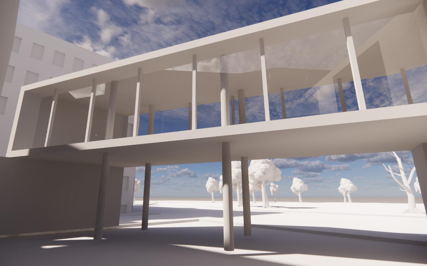 Prompted with designing a Teen Center of the Museum of Fine Arts, I designed a modern building that would facilitate artistic programming for the high school students the space is designed for. A large glass facade makes up most of the street facing walls and the bridging art gallery over the main entrance courtyard welcomes visitors. The moment one passes under the bridge they would be greeted with hidden street art done by one of the visitors on the bottom of the raised floor plate then greeted with a double height atrium introducing visitors to the rest of the building’s language.
