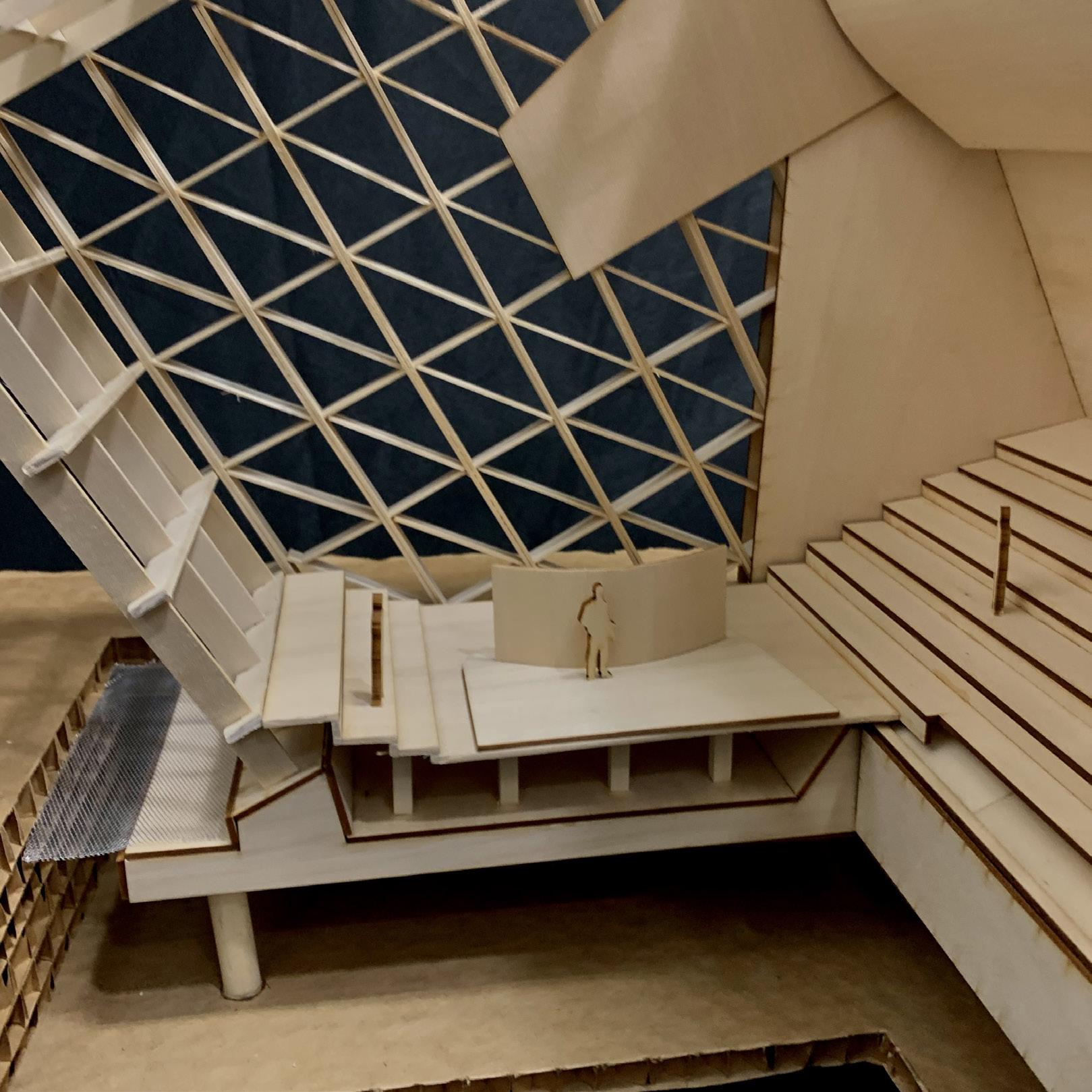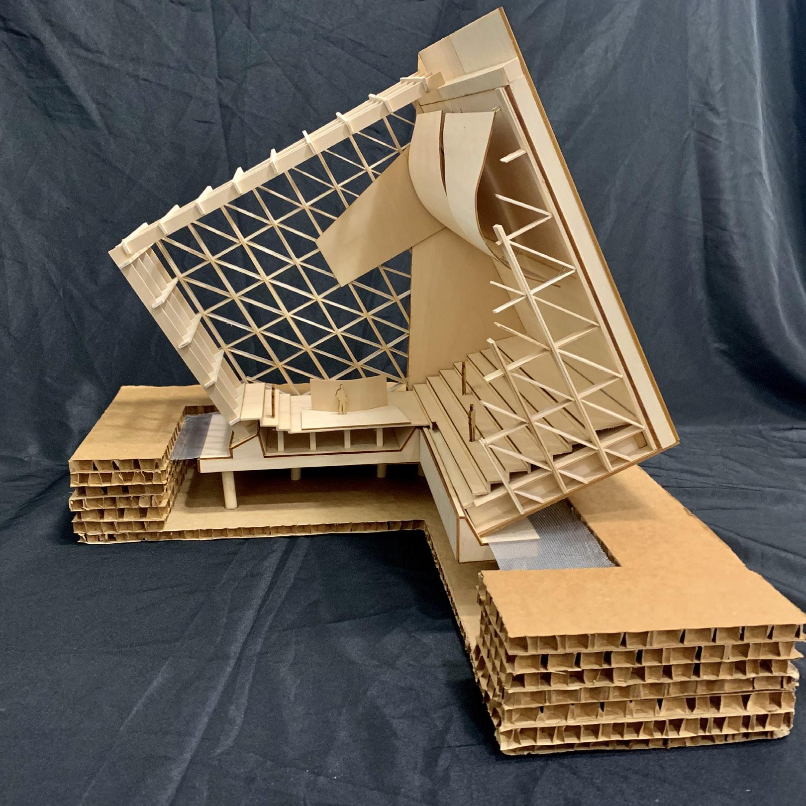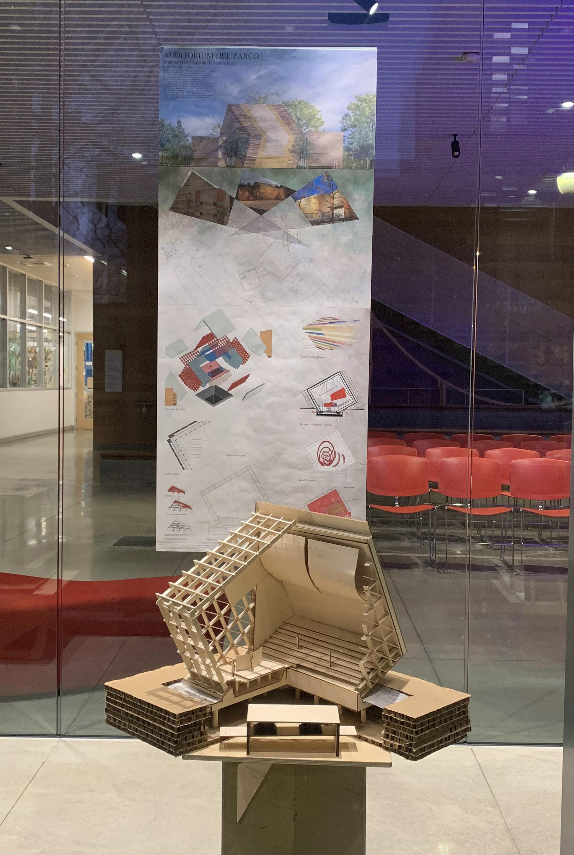 Group precedent study focusing on auditorium spaces and connection to the community. This project challenged students with working in teams, large scale model work, and a tight deadline. Deliverables for this project consisted of researching a famous theater building and discovering what makes it work for the performers and the spectators. Researching the Auditorium del Parco allowed insight into how music is important to cultures and the building was designed to facilitate that cultural need. Working on such a tight deadline forced focus on the most important aspects the building offered and what was unique about it. My group received 3rd for Student Choice - Best Project.