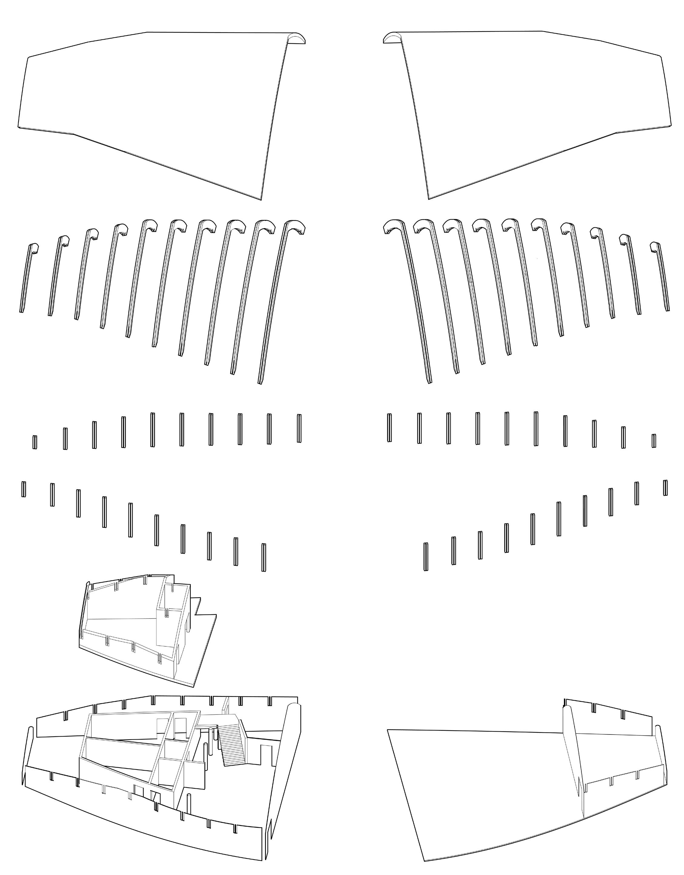 A compilation of works varying media and criteria. These pages contain more examples of models, design exploration, and precedent study. Different techniques and tools were used for each model exploring various modes of representation.