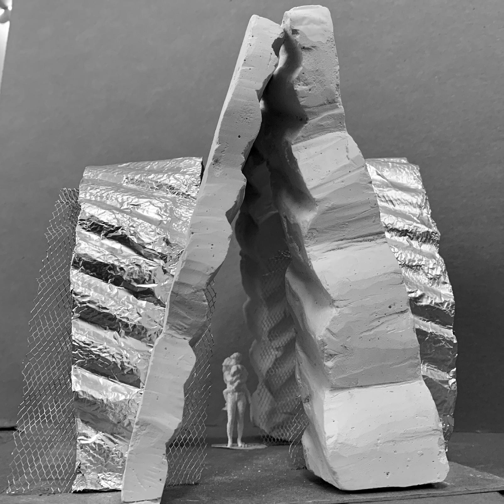 Studio 01 Final Model Plaster, metal mesh, tin foil