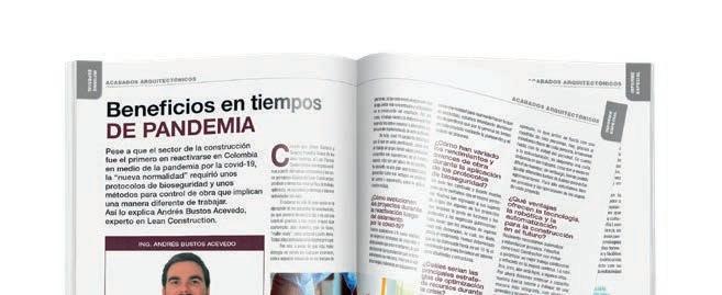 $91.200 ISSN 0121-5663 977012156600669100 196 INFORME ESPECIAL E MUROS, PISOS Y CIELORRASOS Acabados arquitectónicos a la medida de su proyecto Soluciones de innovación y tecnología, Lean Construction y Last Planner System Plan de ejecución y condiciones contractuales EN TIEMPOS DE PANDEMIA Soluciones de innovación y Lean METODOLOGÍA BIM de