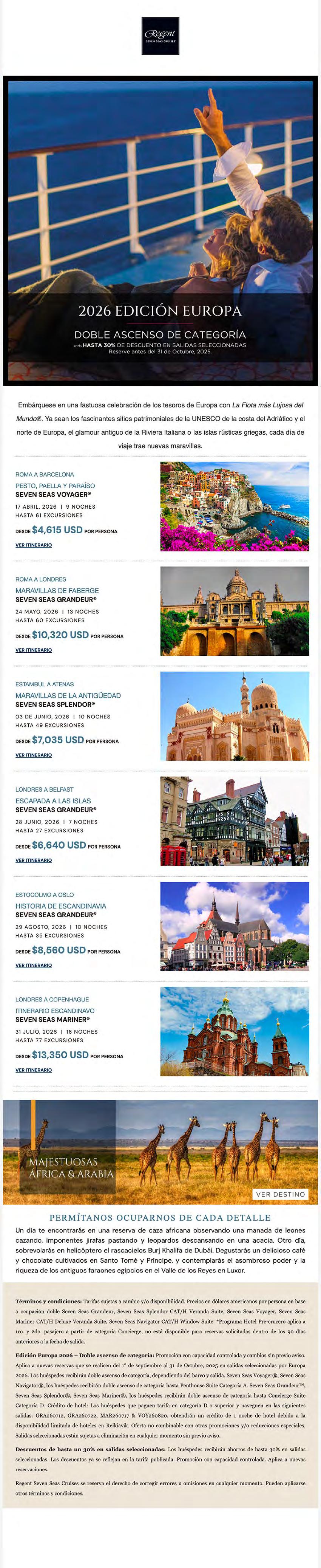 Ayuda a tus clientes a ir más allá de lo esperado con Azamara Cruises y descubre lo que significa realmente permanecer en un destino. Con más estancias nocturnas y salidas tardías que cualquier otra línea de cruceros, su viaje es mucho más que una simple parada en el camino, es una exploración más profunda. Con nuestra Venta Nuevo Horizonte, podrán disfrutar de hasta $500* en crédito a bordo al reservar cruceros seleccionados, para gastar en cenas premium, excursiones en tierra cuidadosamente seleccionadas o experiencias indulgentes a bordo.