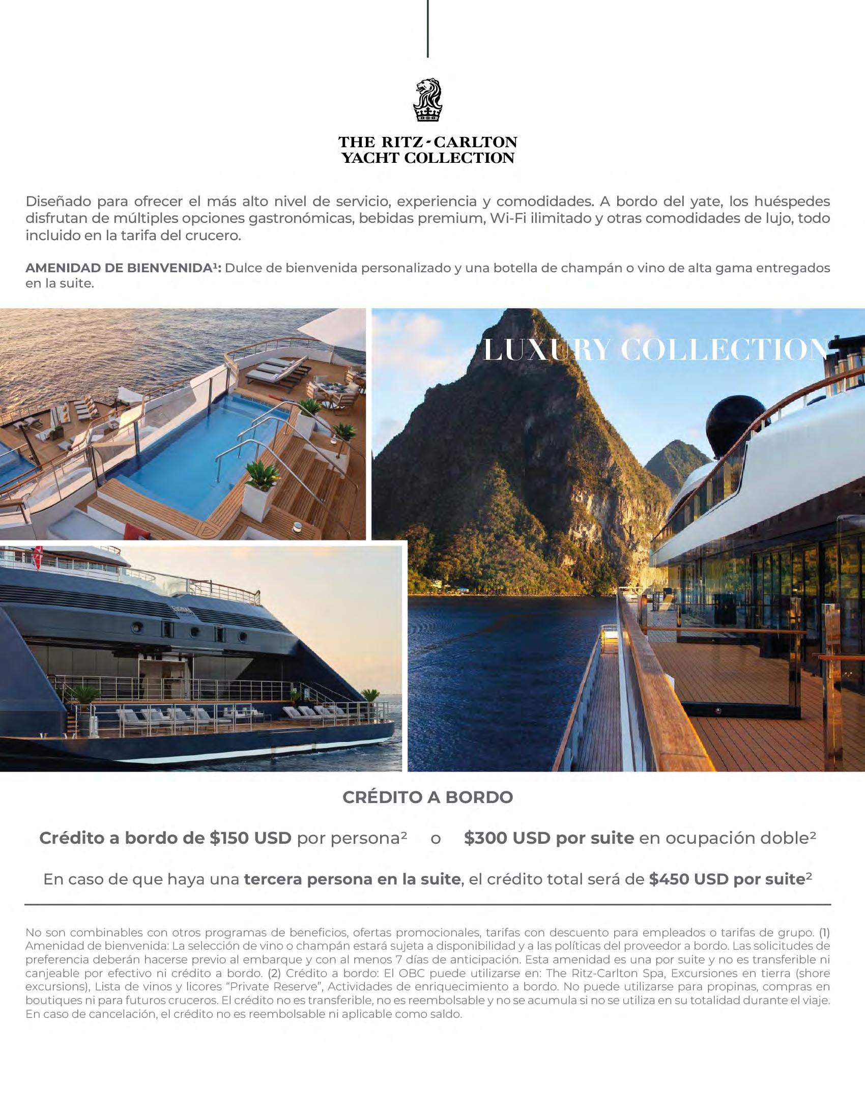 Champán que fluye libremente • Comedor privado en la cabina • Servicio de mayordomo las 24 horas • Batas de baño, toallas y pantuflas a medida • Y todas las inclusiones de la suite y la cabina